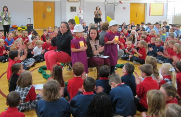 Every Monday morning during Advent, all Saint Vincent de Paul School students gather in the gym for an Advent prayer service led by the kindergarten class.